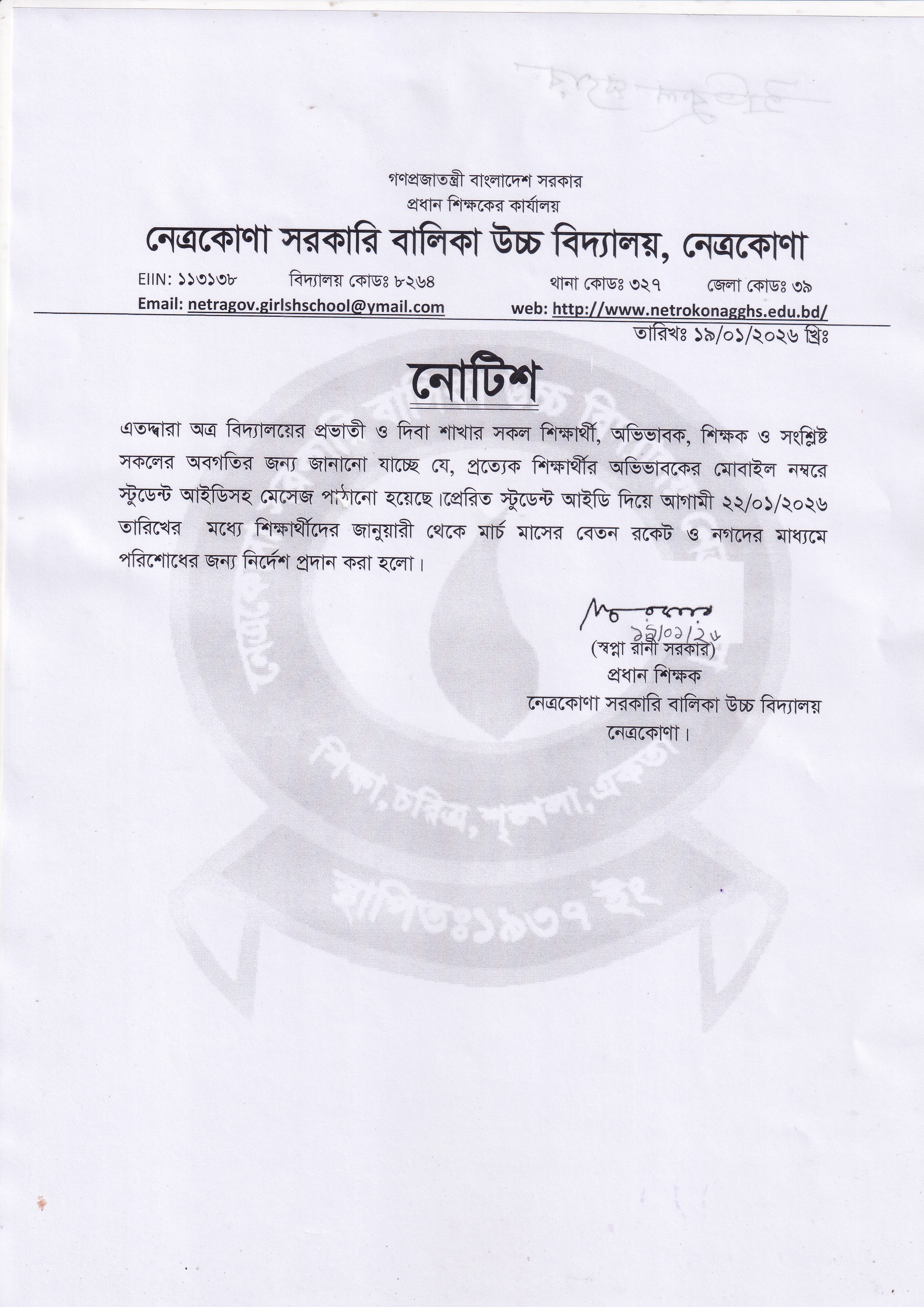 নেত্রকোণা সরকারি বালিকা উচ্চ বিদ্যালয়ের শুভার্থী, হিতাকাঙ্ক্ষী, শিক্ষক, অভিভাবক ও শিক্ষার্থীদের নিয়ে পরিকল্পনার কুশলী বিনির্মাণের মাধ্যমে প্রতিষ্ঠানটিকে দেশসেরা হিসেবে গড়ে তুলতে চাই।